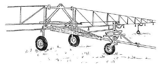 During the summer of 1982 the Division of Hydrotechnics at the Swedish University of Agricu1tural Sciences bought an irrigation boom from F:a Deier1ing, West Germany. The boom, which is a prototype, is 45 m wide and equipped with 17 def1ector nozzles. Each nozzle is fitted with a pressure regulator so that the fall in pressure along the boom does not inf1uence the flow from the nozzles. The pressure requirement is low; 0.4 - 0.5 MPa (40 - 50 m water column) is sufficient as inlet pressure to an irrigator if a boom is used instead of a spray-gun. The water distribution of the boom was determined during a number of days in August, 1982. The distribution of water was uniform, but not as uniform as given by a good spray-gun under ideal conditions (no wind, correct spacing, correct working pressure). On the other hand, neither the spreading pattern of the boom nor the spacing are influenced by the wind. During the measurements the wind was so strong that it would have been impossible to irrigate with a spray-gun. In practice the boom spreads water more evenly than a spray-gun. The boom gives a very high mean intensity (ca 100 mm/h) but a German investigation reports that the water is delivered in the form of relatively small drops (d<1.6 mm). This implies that the supply will be gentle in comparison with the recurring downpours of the spray-gun. Thus, boom irrigation should be well suited for sensitive crops and soils with weak structure. When the nozzles on the boom were tested on a number of different soils the results were better than expected; surface water formation was negligible or non-existent and only in one case was puddling considerable. The proportion of very small drops is much lower in water from the nozzles on the boom than in water from a spray-gun. Consequently, as the boom spreads the water close to the soil the risk of aerosol formation will be much less than with a spray-gun. This is important when partially cleaned sewage water is used for irrigation. Measurements were also made of the water distribution pattern for individual nozzles and it was calculated that the optimal nozzle spacing was 3.0 m, which is in good agreement with the 2.8 m reported for the boom. The nozzles give double overlapping and droplet trajectories with large angles of impact. Because of this, the spreading pattern of the boom is relatively insensitive to variations in the distance to soil surface/crop. As regards labour considerations, the boom is much more complicated than the spray-gun. On account of its working width usually being smaller, the boom requires more frequent moves. With the design of the prototype, each move will, in addition, take longer to accomplish and includes a couple of heavy tasks, provided that it cannot be moved in extended form. By making a number of simple modifications both time and labour can be saved when moving the boom, but it is probably impossible to completely achieve the same flexibility as of the spray-gun. From the energy viewpoint, the boom is clearly superior to the spray-gun. mainly on account of lower working pressure but often also due to more uniform spreading and thus lower water requirement. The saving in energy may sometimes be sufficient to pay for both the boom and extra labour required by the boom. In most cases, however, other advantages of using the boom for irrigation should be considered in assessing whether there is justification in selecting the boom in favour of the spray-gun.